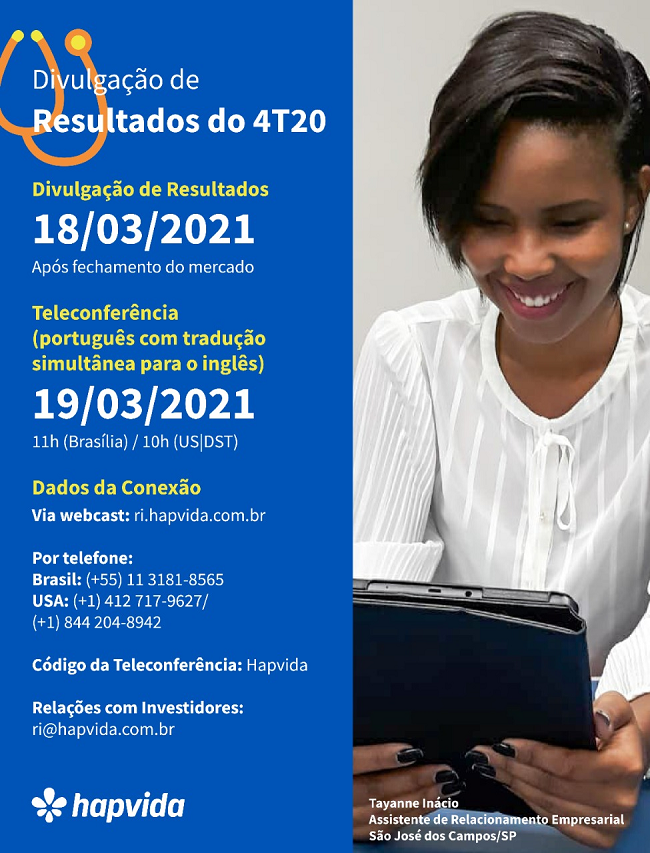 Hapvida | Agenda de Divulgação de Resultados - 4T20 Gerar link Facebook X Pinterest E-mail Outros aplicativos março 13, 2021 Gerar link Facebook X Pinterest E-mail Outros aplicativos Comentários