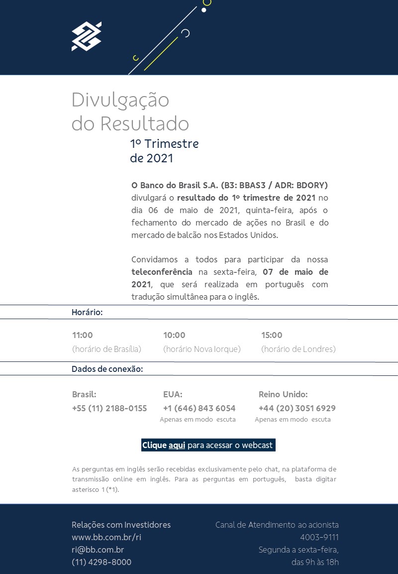 Convite Divulgacao do Resultado Banco do Brasil 1T21 Gerar link Facebook X Pinterest E-mail Outros aplicativos abril 28, 2021 Gerar link Facebook X Pinterest E-mail Outros aplicativos Comentários